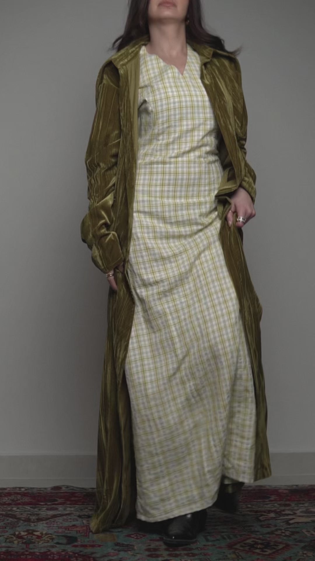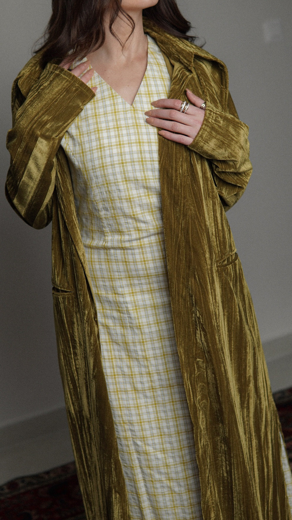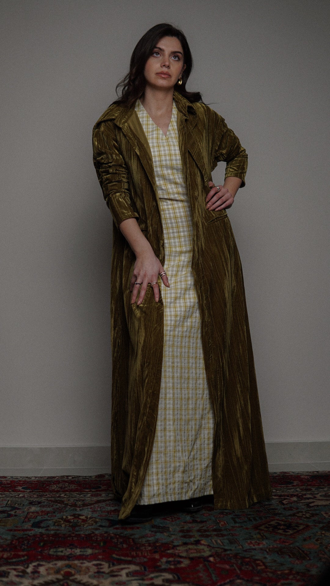2 piece of cosy velvet trench coat with checks dress to match the trench