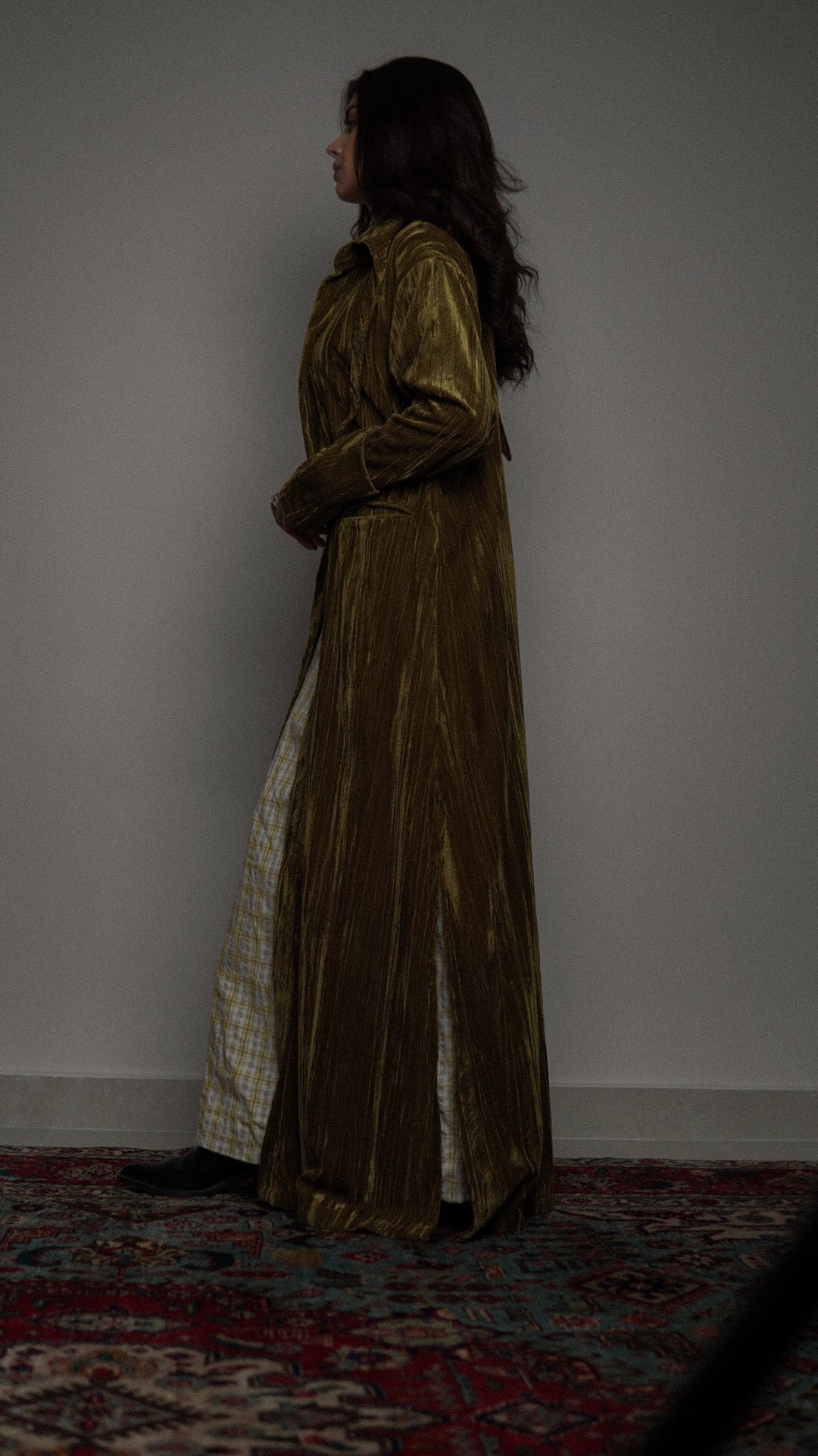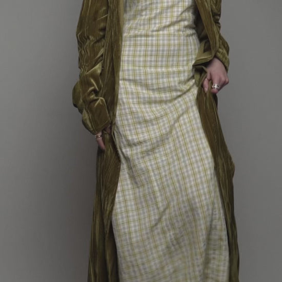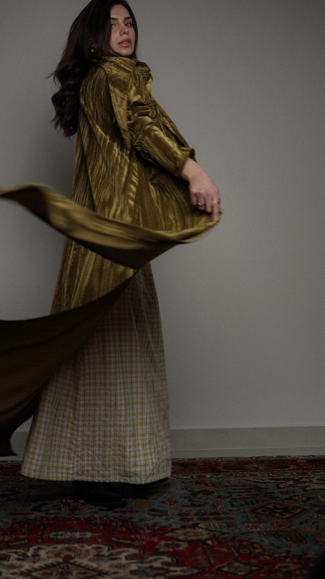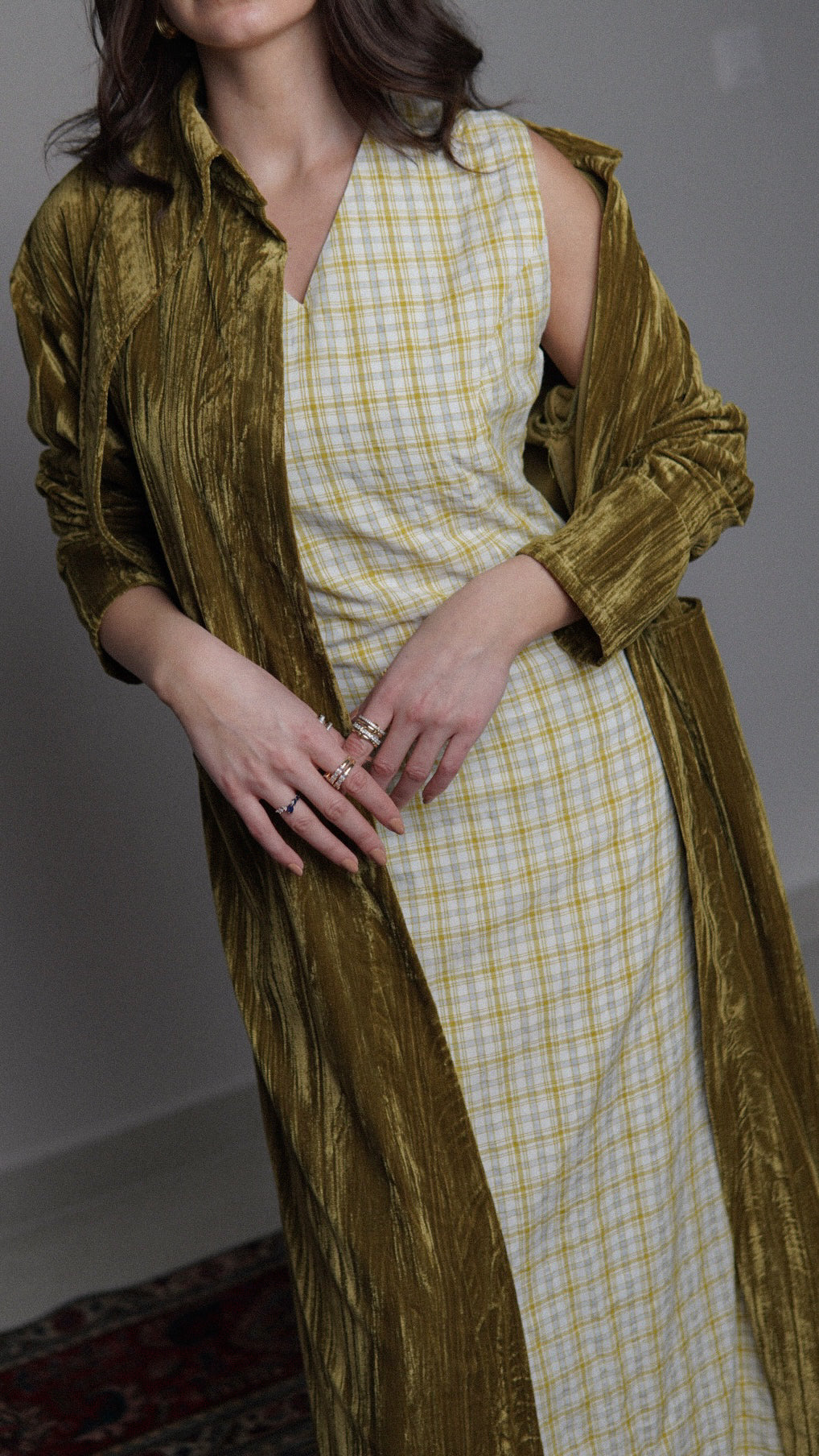 2 piece of cosy velvet trench coat with checks dress to match the trench